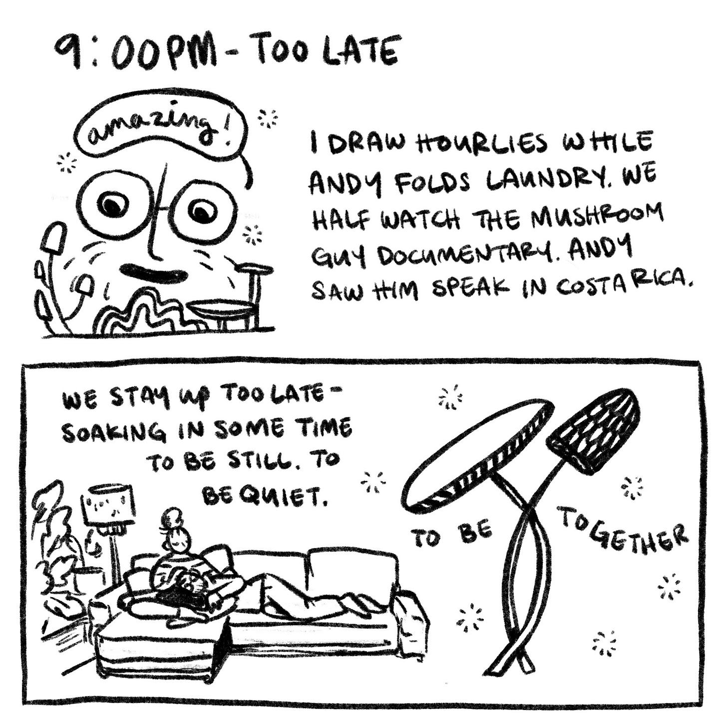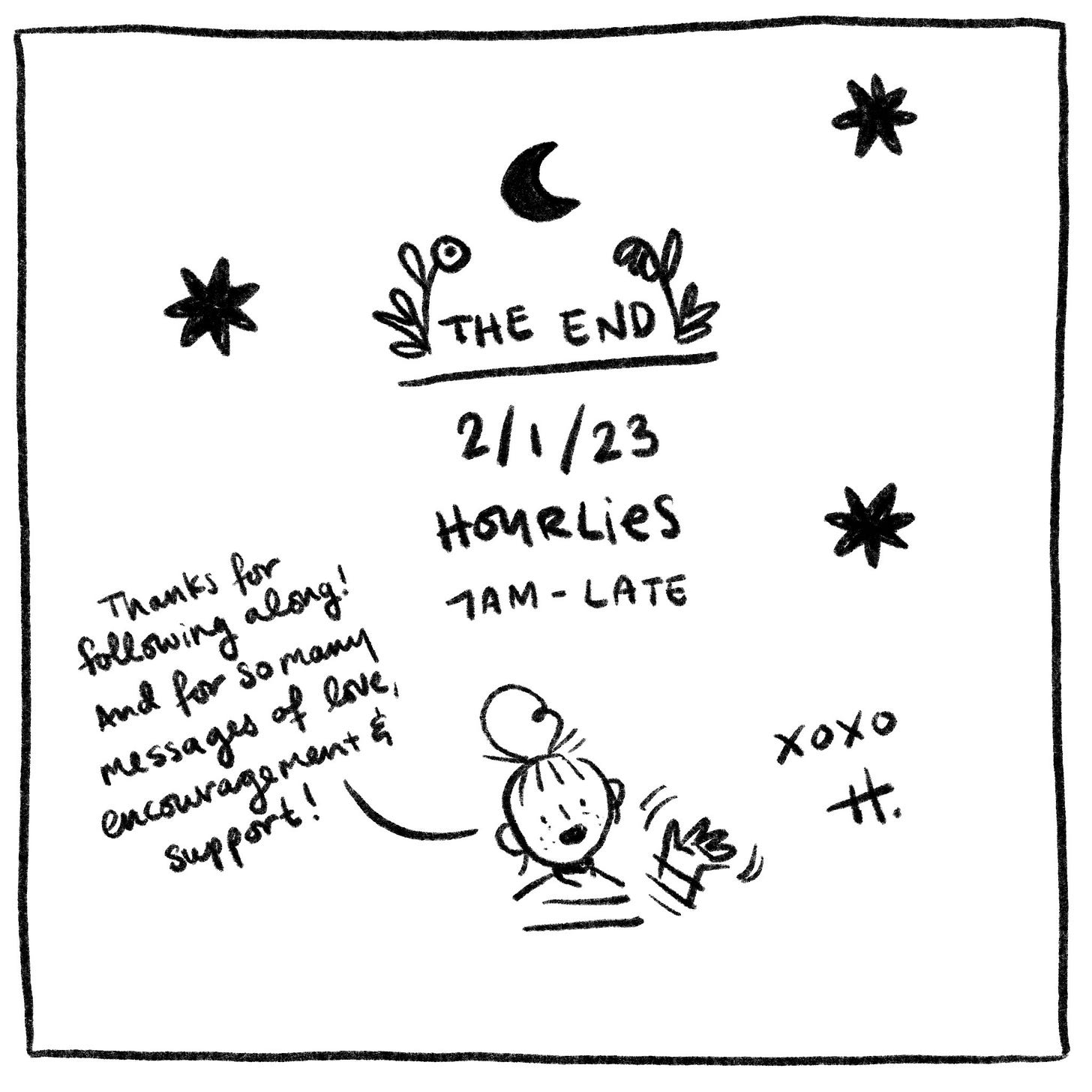 This week, I woke up and saw that people were posting hourly comics. February 1st is hourly comics day1 every year. I’ve done it a few times2, and enjoyed it. I tepidly opened my art account on instagram for the first time in months. I love making comics. I love sharing my life3. I felt a teeeeeny tiny ember in my heart and hand and thought, let this be the ladder!